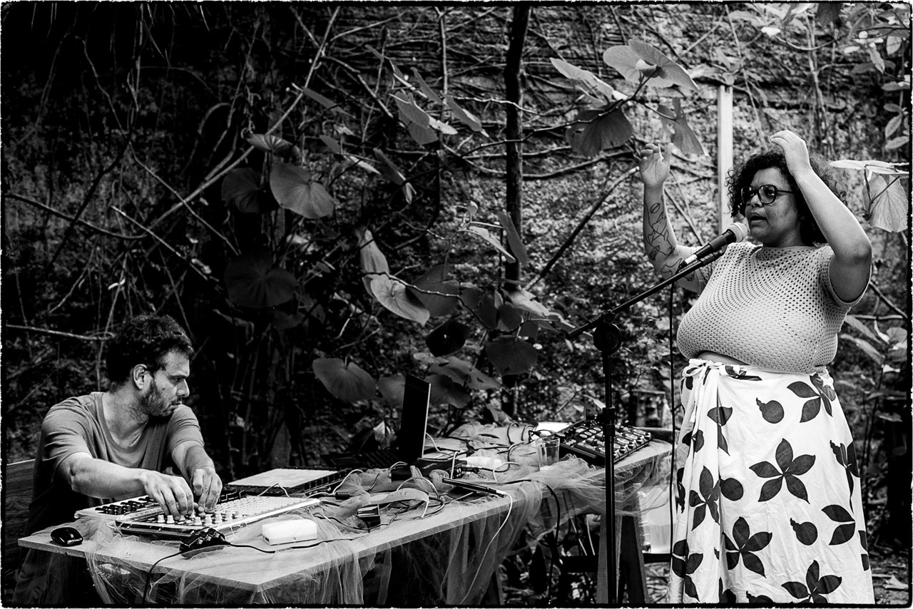 Cancioneiro eletrô(níri)co, macumbeat, spoken poetry, sonoridades imersivas. Encontro de rios, correntezas poéticas, cachoeiras sonoras, afluentes que se juntam conectando a ancestralidade ao futuro, fecundando outro presente.